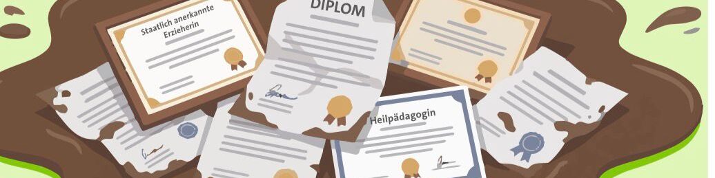 ​Fachkraft-Qualität im Schlamm: Wir wehren uns dagegen, dass wertvolle pädagogische Diplome und Abschlüsse durch prekäre Rahmenbedingungen entwertet werden.