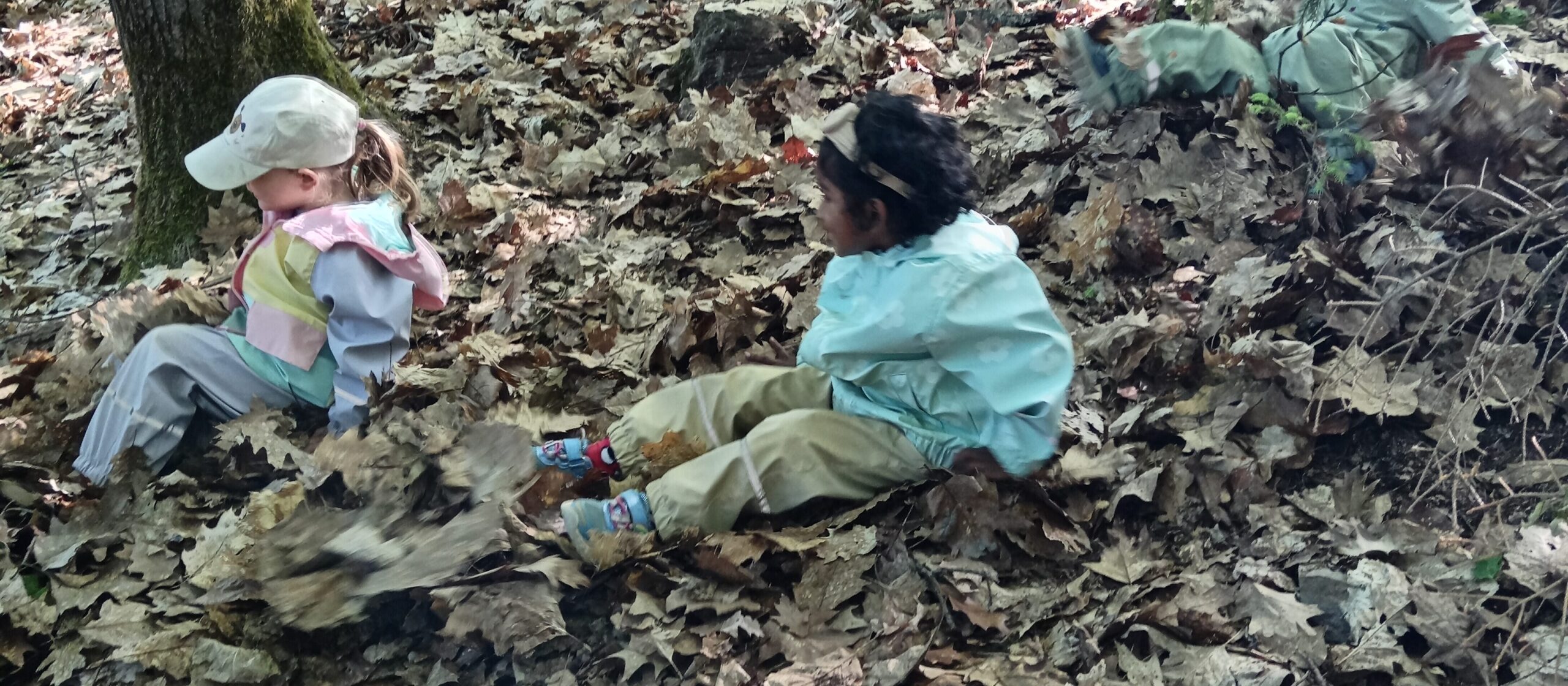 Die ganz Kleinen (U3) erlebten den Wald in einer eigenen Gruppe, angepasst an ihre Bedürfnisse, während die älteren Kinder voller Energie ihre Umgebung erkundeten. Eine besondere Aufgabe hatten unsere zukünftigen Schulkinder: Sie legten mit viel Kreativität und Teamarbeit ein wunderschönes Waldmandala.