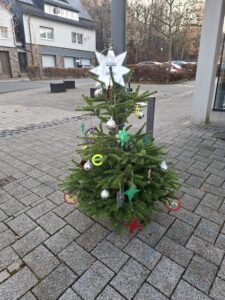 Unser Weihnachtsbaum ist gut sichtbar gegenüber vom Rathaus an der Ecke „Genussvoll“ ausgestellt und lädt alle Besucherinnen und Besucher zum Staunen und Verweilen ein.